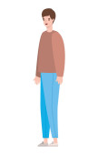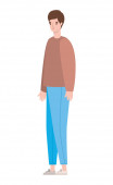 szczęśliwy młody człowiek postać kreskówka stojący odizolowany projekt ikona