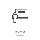 Zdjęcie "Nauczyciel z ikoną kija. Cienki nauczyciel liniowy z ikoną szkicu odizolowany na białym tle z kolekcji edukacyjnej. Znak wektora linii, symbol sieci web i mobile" może być wykorzystywane do celów osobistych i komercyjnych zgodnie z warunkami zakupionej licencji Royalty-free. Obraz jest dostępny do pobrania w jakości wysokiej rozdzielczości do 5760x3840.
