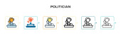 Zdjęcie "Ikona polityków. Ciency politycy linearni zarysowuja ikone izolowana na bialym tle z kolekcji politycznej. Znak wektora linii, symbol sieci web i mobile" może być wykorzystywane do celów osobistych i komercyjnych zgodnie z warunkami zakupionej licencji Royalty-free. Obraz jest dostępny do pobrania w jakości wysokiej rozdzielczości do 5760x3840.