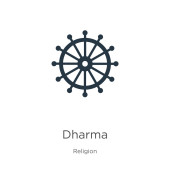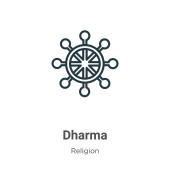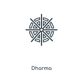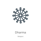 Ikona Dharmy. Cienki liniowy zarys dharmy ikona wyizolowana na białym tle z kolekcji religijnej. Znak wektora linii, symbol sieci web i mobile