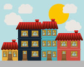 Fioletowy niebieski i różowy budynek miasta krajobraz z chmury wektor projektu