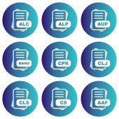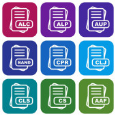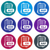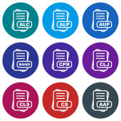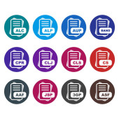 ikony dokumentów w płaskim kole reb, niebieski i zielony kolor dla web