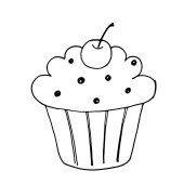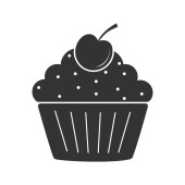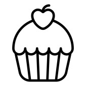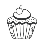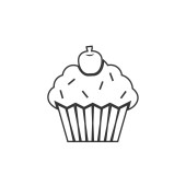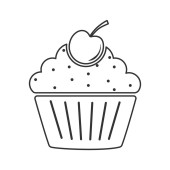 Ikonowa babeczka z wisienkami. Prosta ilustracja wektor dla stron internetowych i aplikacji, pusty zarys izolowany na białym tle