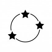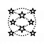 Koło z czarno-białymi gwiazdami, prosta czarno-biała ikona konturu. Ilustracja wektora płaskiego. Odizolowane na biało.