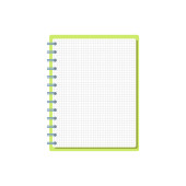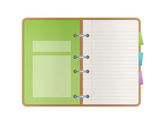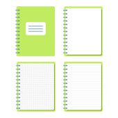 Szablon ze spiralnym notatnikiem i kartkami papieru odizolowanymi na białym tle z miejscem na tekst. Pamiętnik dla biznesu, szkolny wektor z otwartym notatnikiem. Artykuły biurowe. Przestrzeń kopiowania