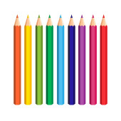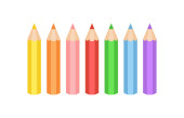 Kolekcja kolorowych ołówkówz miejsca kopiowania izolowane na białym tle. Ilustracja wektora na płaskim stylu kreskówki. Projektowanie szablonów, stron internetowych, aplikacji, marek, reklam, kart, szkół