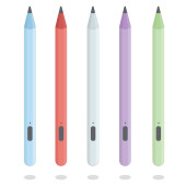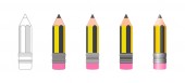 Zestaw ołówków szkolnych z gumą izolowaną na białym tle. Ilustracja wektora na płaskim stylu kreskówki. Projektowanie szablonów, stron internetowych, aplikacji, marek, reklam, kart, szkół