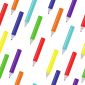 Płynny wzór z kolorowych ołówków izolowanych na białym tle. Minimalne płaski styl wektor ilustracji. Projekt do owijania, tapety, baner, tło, tekstura