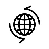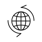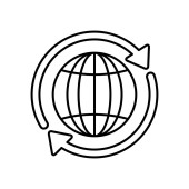 kula globalna z okrągłą strzałką dookoła, styl linii