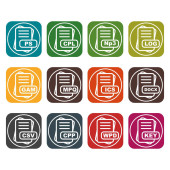 Zdjęcie " Zestaw ikon formatu pliku, ilustracja wektora" może być wykorzystywane do celów osobistych i komercyjnych zgodnie z warunkami zakupionej licencji Royalty-free. Obraz jest dostępny do pobrania w jakości wysokiej rozdzielczości do 5760x3840.