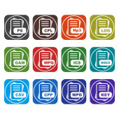 Zestaw ikon formatu pliku, ilustracja wektora