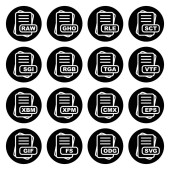 Zestaw ikon formatu pliku, ilustracja wektora