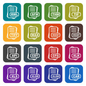 Zdjęcie " Zestaw ikon formatu pliku, ilustracja wektora" może być wykorzystywane do celów osobistych i komercyjnych zgodnie z warunkami zakupionej licencji Royalty-free. Obraz jest dostępny do pobrania w jakości wysokiej rozdzielczości do 5760x3840.