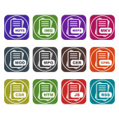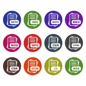 Zestaw ikon formatu pliku, ilustracja wektora