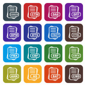 Zestaw ikon formatu pliku, ilustracja wektora