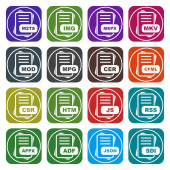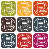Zestaw ikon formatu pliku, ilustracja wektora