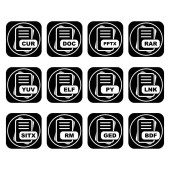 Zestaw ikon formatu pliku, ilustracja wektora