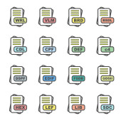 Zdjęcie " Zestaw ikon formatu pliku, ilustracja wektora" może być wykorzystywane do celów osobistych i komercyjnych zgodnie z warunkami zakupionej licencji Royalty-free. Obraz jest dostępny do pobrania w jakości wysokiej rozdzielczości do 5760x3840.