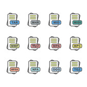 Zdjęcie " Zestaw ikon formatu pliku, ilustracja wektora" może być wykorzystywane do celów osobistych i komercyjnych zgodnie z warunkami zakupionej licencji Royalty-free. Obraz jest dostępny do pobrania w jakości wysokiej rozdzielczości do 5760x3840.