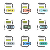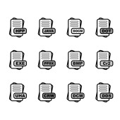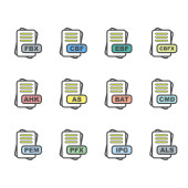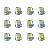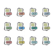 Zestaw ikon formatu pliku, ilustracja wektora