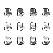 Zdjęcie " Zestaw ikon formatu pliku, ilustracja wektora" może być wykorzystywane do celów osobistych i komercyjnych zgodnie z warunkami zakupionej licencji Royalty-free. Obraz jest dostępny do pobrania w jakości wysokiej rozdzielczości do 5760x3840.