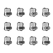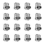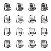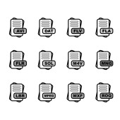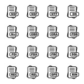 Zestaw ikon formatu pliku, ilustracja wektora