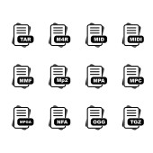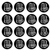 Zestaw ikon formatu pliku, ilustracja wektora