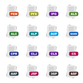 Zestaw ikon formatu pliku, ilustracja wektora