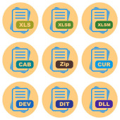 Zestaw ikon formatu pliku, ilustracja wektora