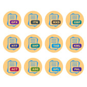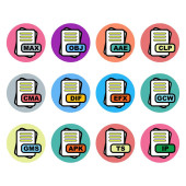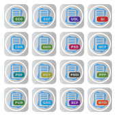 Zestaw ikon formatu pliku, ilustracja wektora