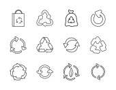 okrągłe strzałki i zestaw ikon recyklingu, styl linii