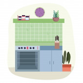 kuchnia okno pieca i dywan izolowane projekt ikona biały tło