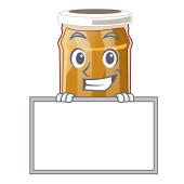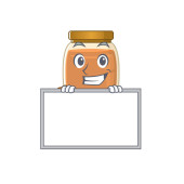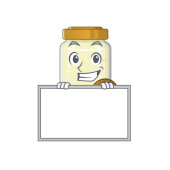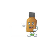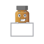 Kreskówka postać projekt butelki witaminy b trzymając tablicę