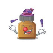 Zabawna butelka witaminy b kreskówki projekt z językiem na twarzy