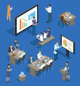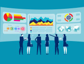 Zespół analizuje dane finansowe za pomocą znaku lub symbolu. Koncepcja kredytowa.