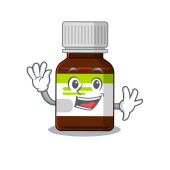 Charyzmatyczna koncepcja projektu maskotki butelek medycznych uśmiechnięta i machająca dłonią