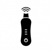 Ultradźwiękowe oczyszczanie skóry twarzy. Liniowa ikona usuwania czarnej głowy, podnoszenia masażera. Czarna prosta ilustracja elektronicznego urządzenia do pielęgnacji twarzy w domu. Kontur izolowany wektor na białym tle