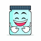 Butelka z badaniami medycznymi w kreskówkowym obrazie z palcem piankowym