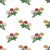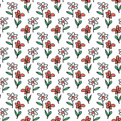 Letni wzór bez szwu kwiatowego. Ilustracja wektora. Element konstrukcyjny tkaniny, tapety, baner, papier pakowy.