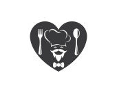 Szef kuchni z logo serca. Szablon projektu logo Love Cooking.