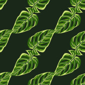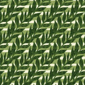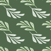 Botaniczny bezszwowy wzór z czarnymi gałęziami na zielonym tle. Ilustracja wektora. Może być stosowany do tapet, wypełniaczy wzorów, tekstur powierzchniowych, nadruków tkanin.