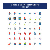 Nowoczesny zestaw ikon kolekcji multimedialnej z płaskim kolorem