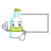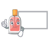Ręczny dezynfektor kreskówki projekt z kciuki do góry palec przynieść białą tablicę