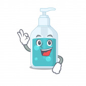 Kreskówkowy projekt dezynfektora ręcznego pokazujący zabawną twarz z mrugającym okiem