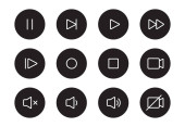 Muzyka, zabawa, pauza, do przodu, do tyłu ikony przycisków zestaw