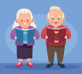 słodkie szczęśliwy dziadkowie para z parasole awatary znaków