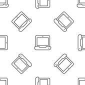 Szara linia Fitness mata rolki ikona izolowany bezszwowy wzór na białym tle. Mata do jogi. Urządzenia sportowe. Wektor.