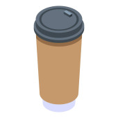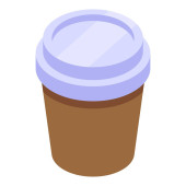 Plastikowa ikona filiżanki kawy, izometryczny styl