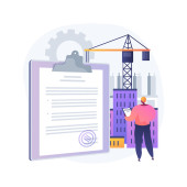 Budowa pozwala abstrakcyjną koncepcję wektor ilustracji. Oficjalna zgoda, obsługa wykonawcza, projekt przebudowy nieruchomości, projekt domu, formularz zgłoszeniowy, abstrakcyjna metafora działalności nieruchomościowej.