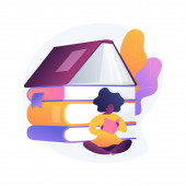 Przeczytaj abstrakcyjną ilustrację wektora koncepcji książki. Spędzić czas w izolacji, nawyki czytania, fikcyjny świat, biblioteka domowa, czytać z dziećmi, ściągnąć e-book za darmo abstrakcyjny metafora online.